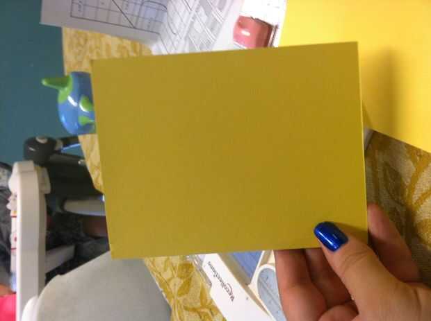 Uno de lo 8 1/2 "X 11" pedazos de cartulina y medio cortado en el borde largo para que ahora tenga dos hojas de eso medida 8 1/2 "X 5 1/2"