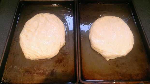 Dividir la masa por la mitad y simplemente presione la masa en la sartén. Puede que necesite un poco de aceite en la parte superior para dejar las manos se adhieran a la masa.