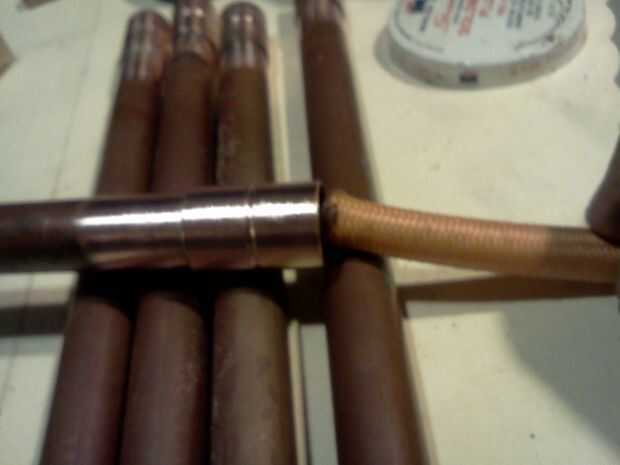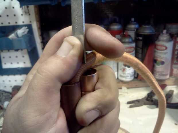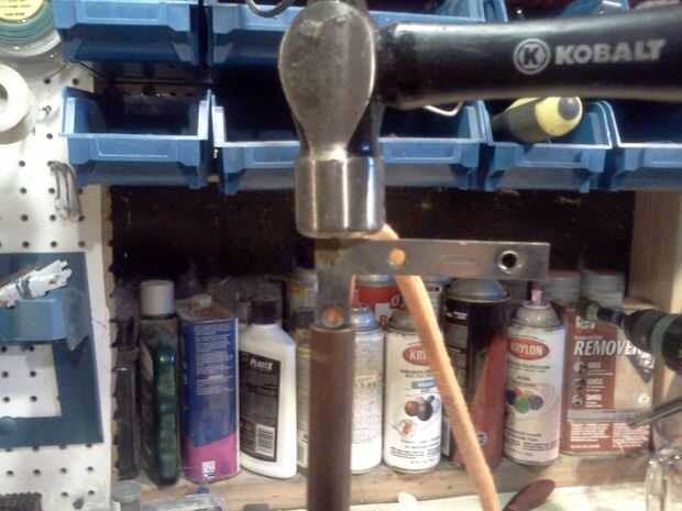 Iniciar a continuación la cuerda bungee a través de los tubos de tres centro de alimentación, a continuación, utilizando una cuña de algún tipo en este caso utilicé un soporte en L y condujo el bunge arrugado en cada extremo los restantes tubos de extremo. Cortar los soportes con una dremel y condujo la parte restante tan profundamente como sea posible con un destornillador de cabeza plana y un martillo.