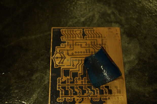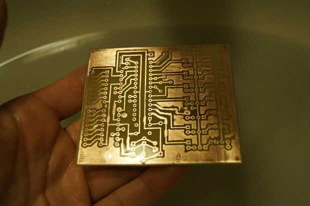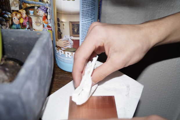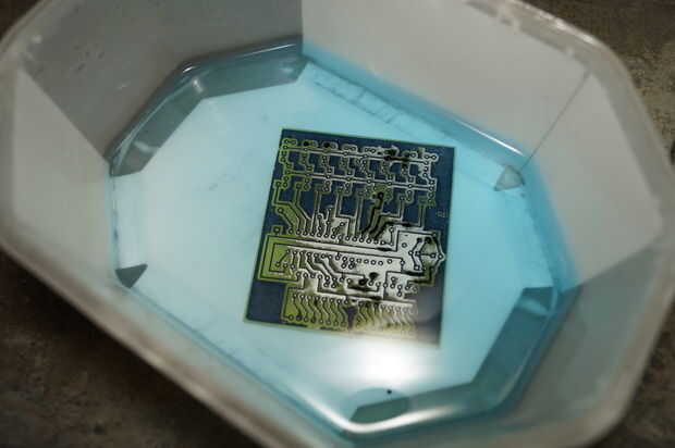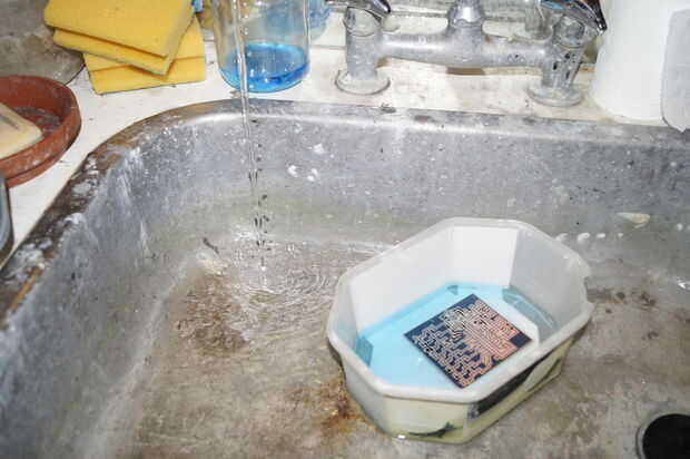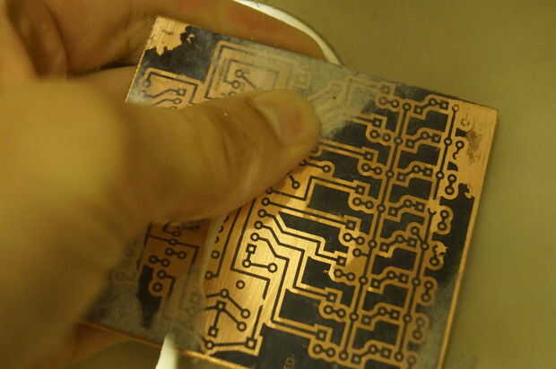 -poner su impresión en el solvente y deje hasta que es don y se puede ver el plástico debajo del cobre