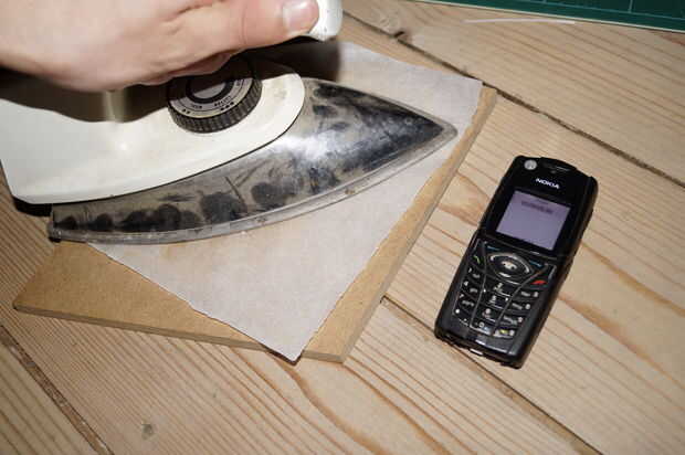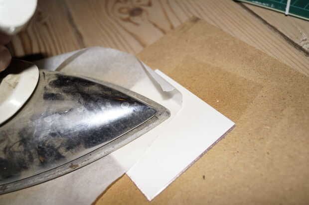 -ahora ponga parafinado de papel encima de ti un uso la plancha para transferir la impresión (recuerda pasa la plancha a punto de conseguir una cobertura uniforme)