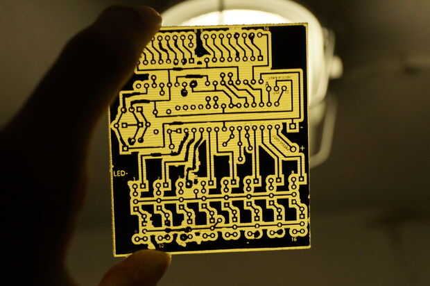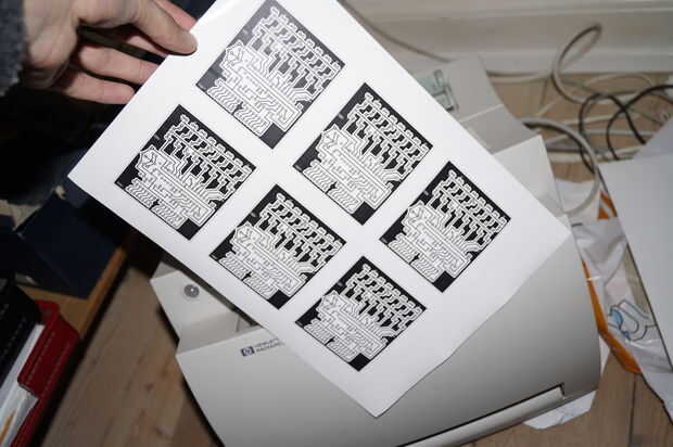 -poner tu foto brillante papel en la impresora láser jet e imprimir el circuito (impresión como muchos como usted puede en un papel si no obtener una transferencia pendiente)