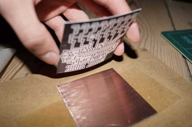 -cortar el papel para el tamaño y colóquelo en el lado de cobre de la PCB