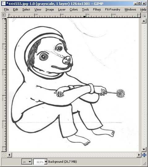 Abra la imagen en Gimp arrastrando el archivo en lona gris de Gimp o usando el diálogo en la barra de archivo como en cualquier otro programa.