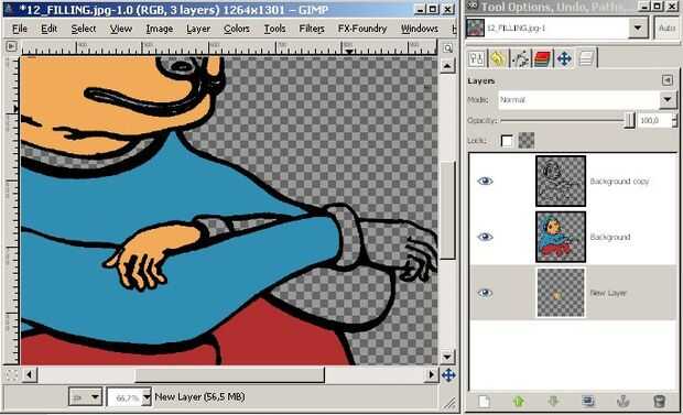 Cuando desea llenar varios espacios o islas, puede utilizar una tercera capa debajo de la capa de color y utilizando la herramienta lápiz a color.