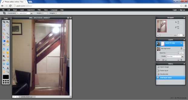 Título casi lo dice todo. Seleccione la imagen (b) en la paleta de capas y añadir una máscara de capa. La máscara de capa es el icono en la parte inferior de la paleta de capas que es justo el símbolo de configuración. Parece un rectángulo con un círculo gris en el centro.