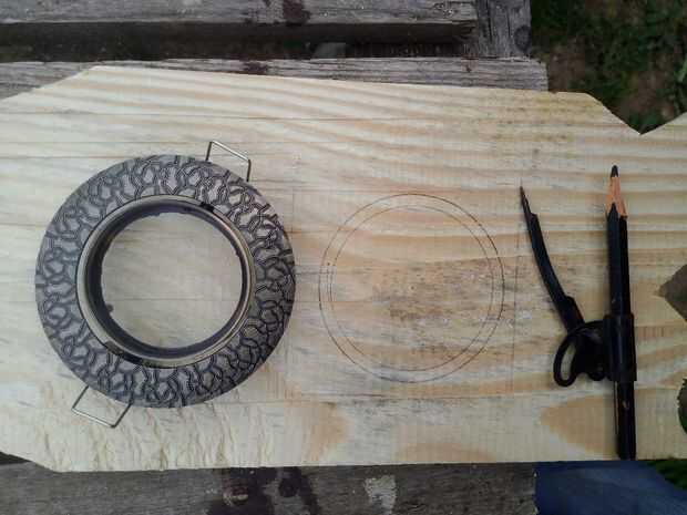 Marca los lugares para las luces, hacer unos agujeros auxiliares con un taladro y luego recorto con un traste.