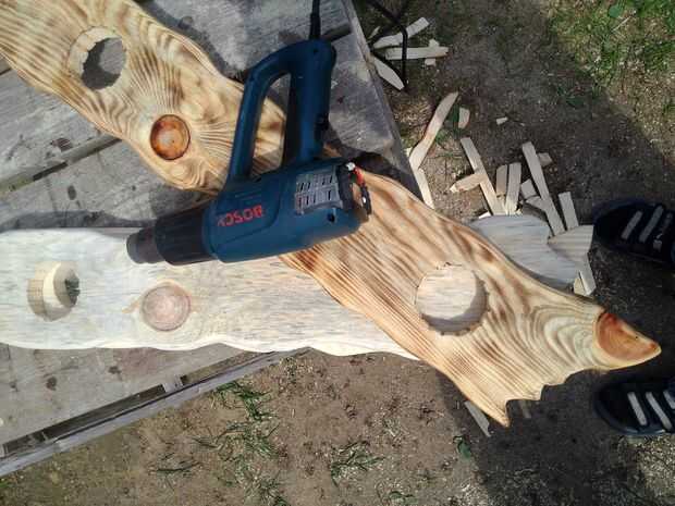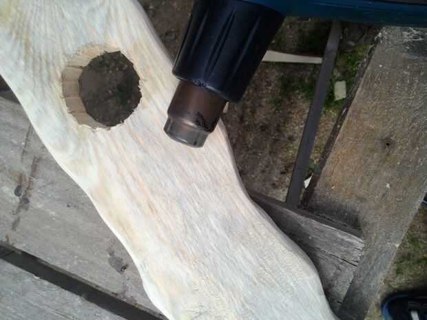 Hay docenas de maneras para lograr el resultado que quiero como pintura o barnizado. Aún así, decidí utilizar "curado" (o, simplemente, quemar). Me ayudará a conseguir el mejor aspecto posible de la fibra de madera y crear un diseño áspero Rin único. Por lo tanto, utilicé una pistola de aire caliente que hace 660 Celsius de calor. Se puede utilizar como quemador de gas.