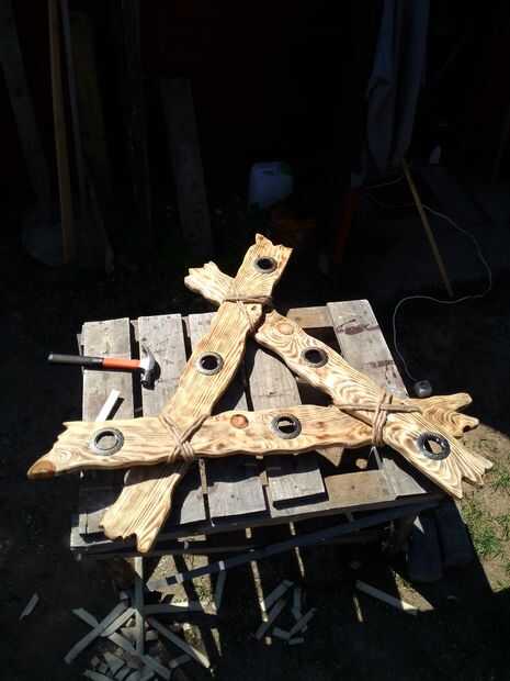 Lámpara de madera reciclada con Himmeli pantalla!Saqué un viejo palet aparte... y había grandes bloques de madera entre las capas.Eran chatarras y fueron colocados en la pila de "quema posterior".Fin de semana pasado Encendimos fuego de Smás y e