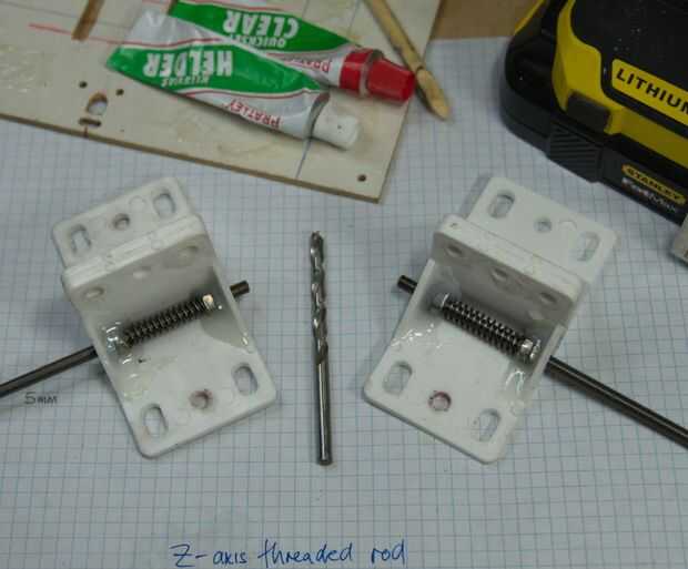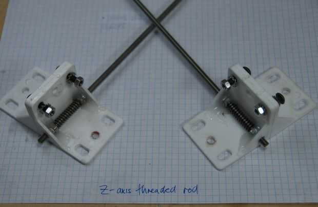 El carro del eje z en la varilla roscada del tornillo, añadir unas gotas de aceite 3-en-uno más para el 'tuercas con rosca' dentro de los soportes y el 'taladro' el carro hasta el final de la varilla roscada más cercano del taladro, también a un ritmo constante y lento.