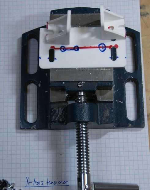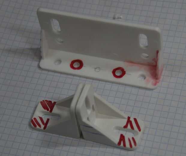 - Tomar la otra pieza que acaba de hacer y empuje contra el soporte. Marque y perfore agujeros para los tornillos de M3 para que no interfiera con el cinturón de