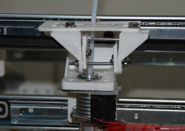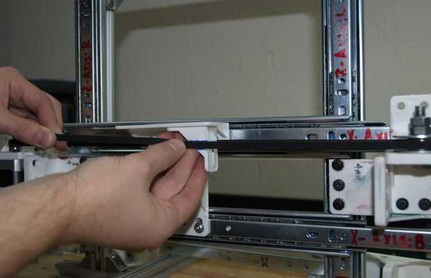 - Marque y perfore agujeros en el soporte largo para que puede montarse en el eje x. Utilice los orificios existentes en el transporte de hotend
