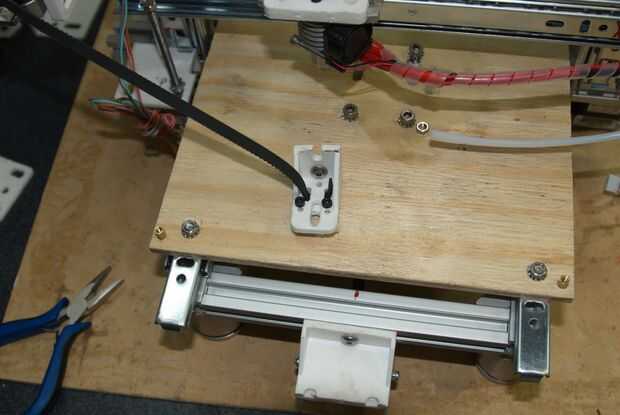 As mentioned in an earlier step the belt should be tightened so that it makes a G note when plucked. We also added another Type 'C' bracket, acetone welded back to back to the other Type 'C' bracket for additional rigidity (will post an updated photo shortly)