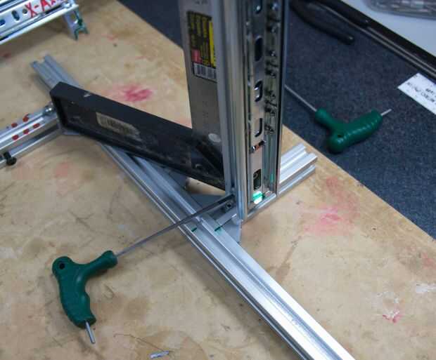 - Utilizando los orificios existentes, pernos de rosca que se usará para conectar los corredores para el marco (si eres incapaz de pernos de 6mm M5 de origen, entonces tornillos de 10mm y cortar más corto con la dremel)