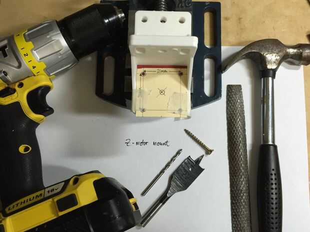Herramientas: Dremel, taladro, broca de 3,2 mm, 22 mm broca, archivo, acetona, martillo, clavo, plantilla de montaje (creado anteriormente) del motor