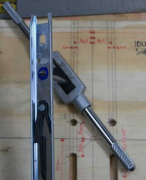 • Marcar cuatro agujeros de 5mm 15mm desde el eje x y 16,5 mm desde el eje y centro de las líneas. Marcar un adicional dos agujeros de 5mm 40mm desde el eje x y 16,5 mm desde el eje y centro de las líneas.