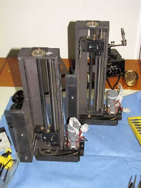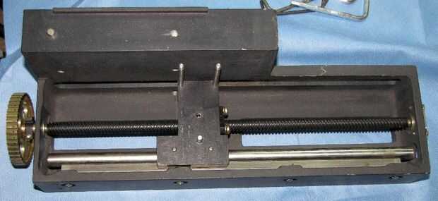 Encontré que un par asambleas Posicionador lineal en la rejilla de hack en el Milwaukee Makerspace e inmediatamente di cuenta que tenía una parte difícil de la máquina casi lista para entrar! Limpié, hizo algunas modificaciones para adaptarse a mis propósitos y atornilladas al bastidor de la impresora. Puede encontrar similares ensamblados en Desguaces o comprarlos nuevos. También hay un montón de alternativas. No es que difícil de hacer propios ensamblados mediante tornillos, bloques y gran diámetro guía de carriles o guías lineales. Casi cualquier cosa que usted hace de piezas apropiadas (o cualquier conjuntos baratos que encuentran en eBay) superan a las varillas de rosca M5 y carriles de guía flexible, apoyado por el extremo de 8mm que se utilizan normalmente.