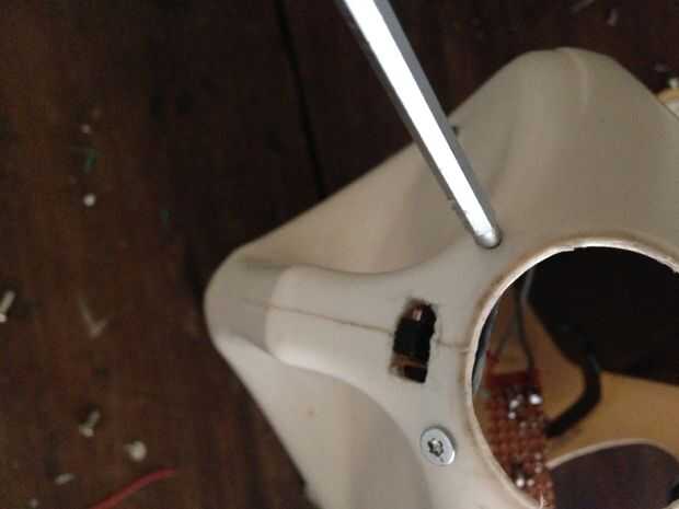 En esta etapa queremos transferir la configuración de la mesa de trabajo dentro de la botella. Como dije al principio, por favor, asegúrese de que el panel solar puede entrar en la botella. Ahora tenemos que cortar una abertura, ligeramente más pequeño que nuestro panel solar en la botella. A través de esta abertura, pasaremos nuestra configuración dentro de la botella. Lo primero es asegurar los LEDs preferentemente en el otro extremo de la botella que es exponer el material brillante que se pegan nuestros LEDs. La batería debe entonces asegurar un pegamento caliente o nada aplicables. Lo justo no debe dejarse para colgar. Puede usar los tornillos si estás a gusto trabajando con ellos.