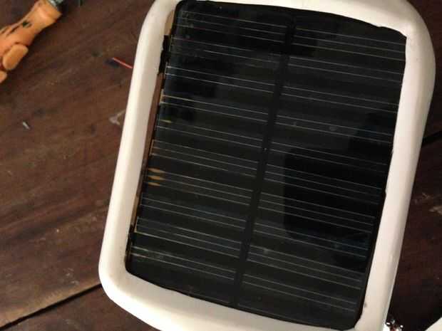 La siguiente cosa a hacer es encontrar un lugar apropiado para garantizar nuestro interruptor. Luego sellamos la apertura con nuestro panel solar (que es por eso que la apertura debe ser ligeramente más pequeña que nuestro panel solar).