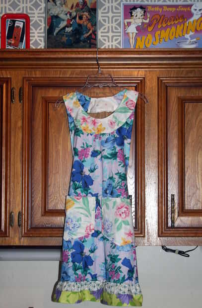 Por lo que hizo mi patrón y probado en. Esta fue mi delantal de prueba y puedo modificar desde aquí. Inmediatamente supe que el yugo de cuello era demasiado pequeño.
