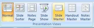 En la segunda sección de la cinta (o la opción de 5 º de la izquierda), verá una opción etiquetada Master Slide. Haga clic para volver a la vista de la diapositiva maestra.