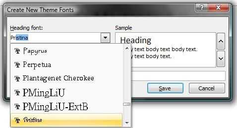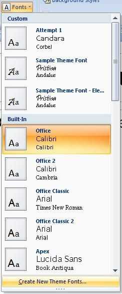 Abra la lista desplegable de fuentes . En la parte inferior, hay una opción denominada Crear nuevas fuentes del tema. Elegir eso.