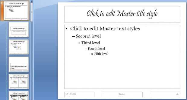 Desde que eras en el Patrón de diapositivas del tema, el tema de la fuente debe aparecer en cada diseño de diapositiva posterior.