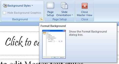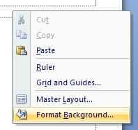 Comenzar por la sección de fondo de la cinta. También, puede haga clic derecho en el espacio libre de la diapositiva y seleccionar Formato de fondo.