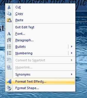 Encuentre la opción de Efectos de texto de formato y haga clic derecho sobre la fuente seleccionada.