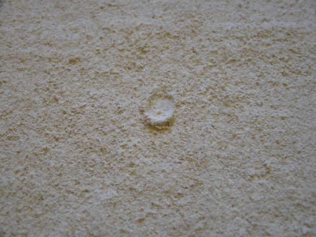 Para empezar, la voy a liar la masa de norte a sur y este-oeste, haciendo un pequeño círculo. A partir de ahí, estirar siempre desde el centro. Su forma de trabajo alrededor del círculo, manteniendo como incluso y redondo como sea posible.