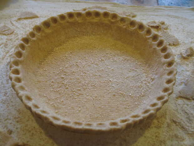 Para una tarta al horno, meter el fondo y los lados con un tenedor, línea con papel sulfurizado y verter en pie pesos o frijoles secos. Cueza al horno: 475 Fahrenheit, 10 a 15 minutos o hasta que estén dorados.