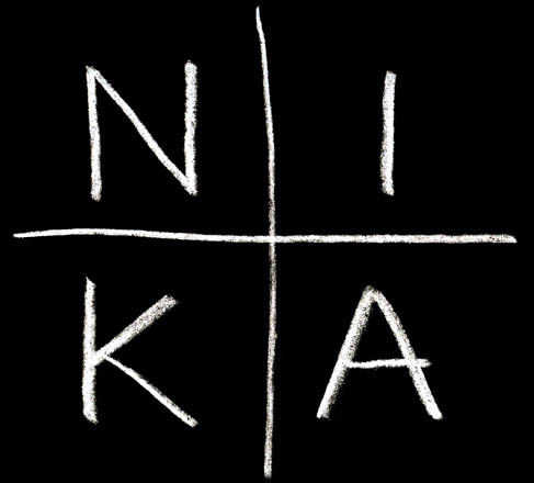 a veces la imagen que ves a continuación se superpone sobre una mariposa. Es una simple cruz griega (brazos de igual longitud) con las letras de la palabra griega significa "victoria" o "Conquistador." El famoso zapato de correr con el swoosh utiliza la misma palabra en su nombre, pero ya que el alfabeto griego no fácilmente y completamente viene encima en el alfabeto que usamos en inglés y muchos otros idiomas, algunas letras están representadas diferentemente. Así, algunos hechizos a Nike y otros hechizos Nika. Es la misma palabra, sin embargo.
