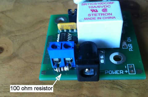 El resistor de 100 ohm puede acoplarse al conector azul de entrada del módulo de relé como se muestra en la siguiente imagen: