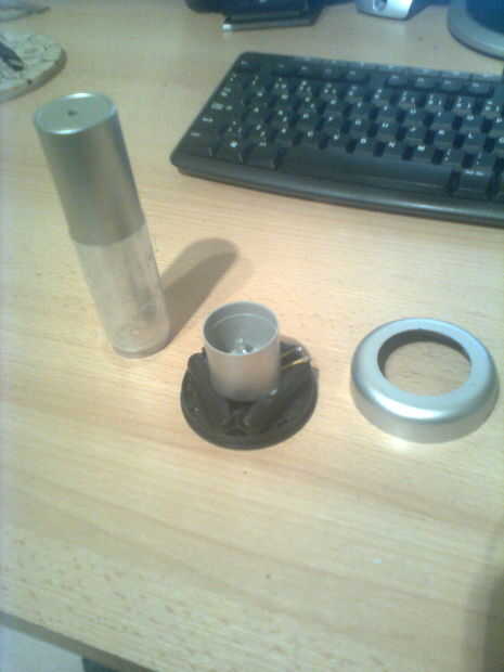 Primero derribó la lámpara osram y llevó a cabo la parte de LED, después hice un agujero en la parte inferior del tubo likething y hotglued tablero de LED en su lugar. Entonces tomó un trozo de PCB y envuélvalo en la parte de plástico del LED. Entonces todo reunidos y del LED había encendido. Y había un agujero en la parte superior de la una cosa y en la oscuridad construyó una forma cool de mi cierre.