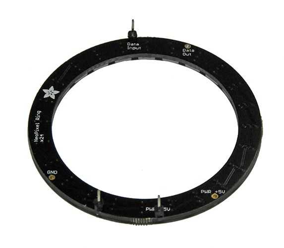 En el circuito también he añadido una resistencia en serie a la línea que conduce el anillo y un condensador electrolítico entre las líneas de energía, según lo indicado por Adafruit no para quemar los LEDs. Usted notará de las imágenes que usé un condensador de 1000uF 35V. La tensión de la misma forma en alto, pero que es lo que tenía en mi trastero y me daba pereza llegar más pequeño.