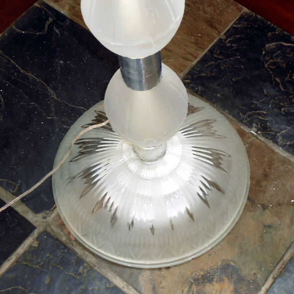 Mi base es la tapa de vidrio luz de un viejo ventilador de techo que había estado guardando por apenas esta razón. Corté algunos 16mm MDF en círculos y agujeros de 20mm perforados en éstos con una broca de pala para que bien sostener el peso de la lámpara y mantenerlo vertical y recta.