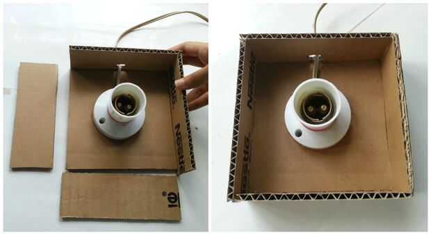 Corte un pequeño agujero en cualquier una tira para extraer el cable de la luz montaje (ver segunda foto de este paso).