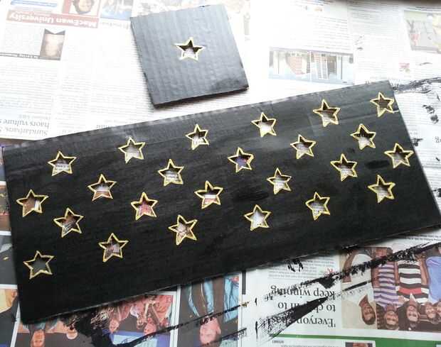 Yo he usado pintura acrílica oro a color los bordes de las estrellas.