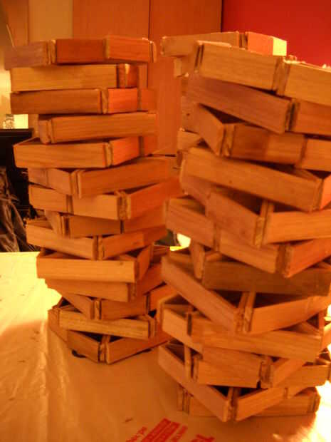 El reto era hacer una lámpara barata de cosas que ya tenía puesta alrededor.Materiales-1 paquete de calzas del cedro ($3 - $4 en Home Depot)-Algunos chatarra fina caoba-Madera contrachapada un poco-Las piezas de la lámpara pedí en ebay por unos $10-P