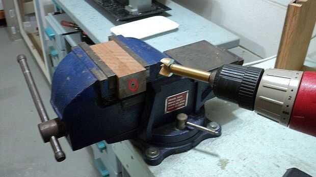Procedí a añadir los Avellanadores a cada extremo, la broca forstner en los agujeros de centrado y haciendo los huecos necesarios. Siguiente paso fue utilizar una serie de pequeños para brocas más grandes hasta llegar al tamaño de espacio libre para una barra de mandril de 5mm. Aquí es importante agujero desde cada extremo en incrementos menores para prevenir poco wander, no tratar y explosión a través de sólo dos o tres. Lo hice en unos 5, no tarda buen momento para hacer esto y si se hace correctamente, la broca siempre toma el camino de menor resistencia y seguir el curso anterior. El procedimiento fue un éxito, el mandril se deslizó a través de suavemente-siguiente parada, el torno para darle alguna forma.