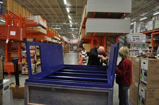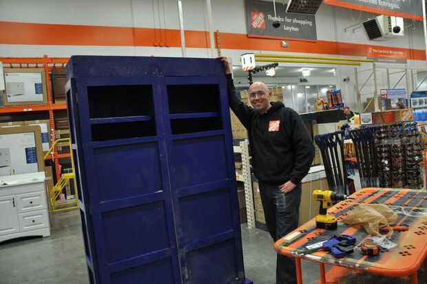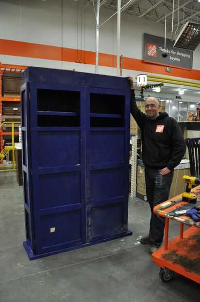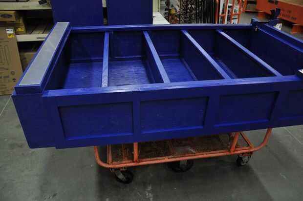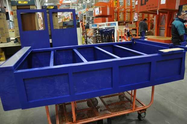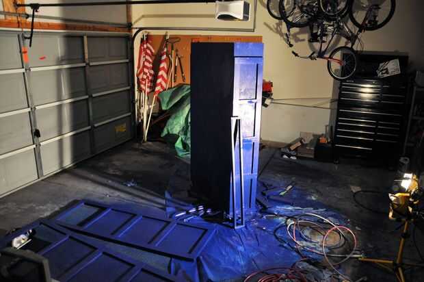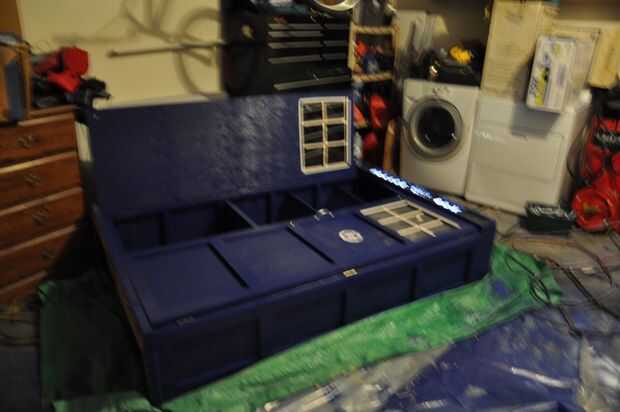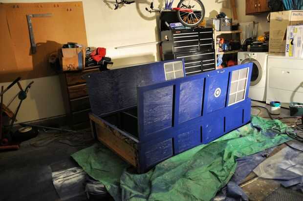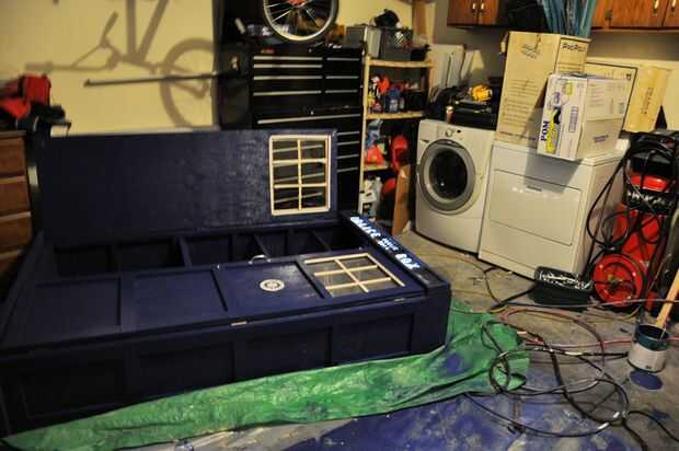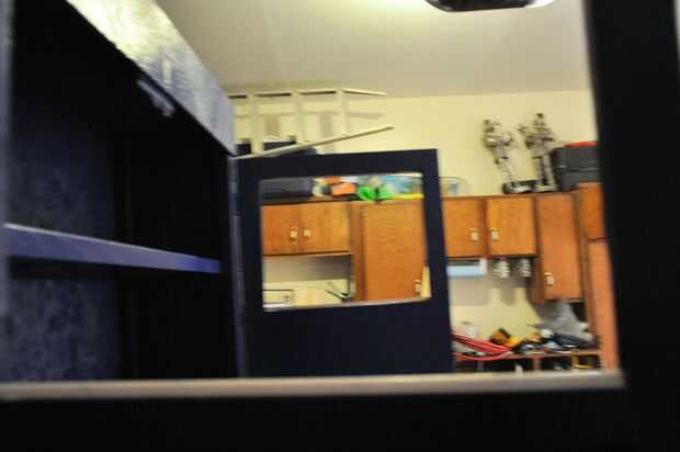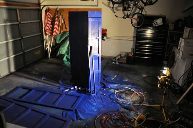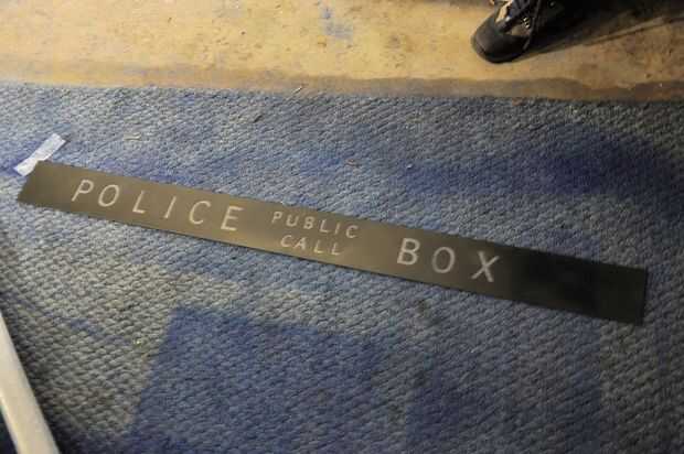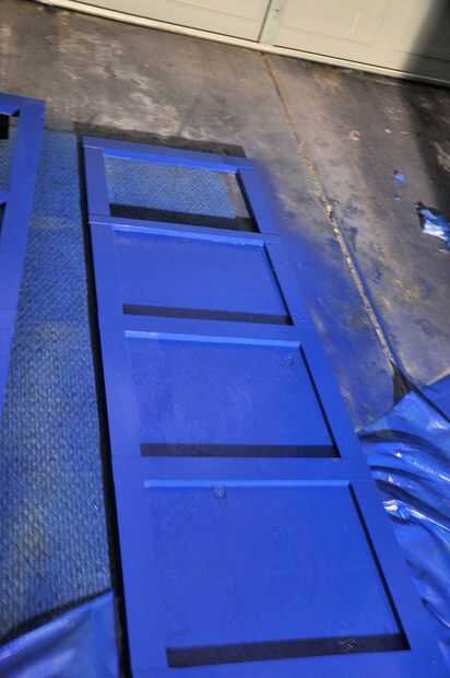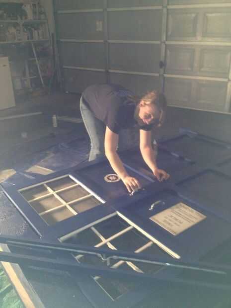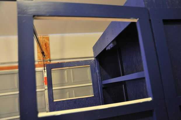 Once home, DJ broke out home power painter and a bucket of blue paint and got to it... Mientras que él estaba pintando, Marilyn se puso a trabajar de los detalles más pequeños como el signo en la puerta, haciendo el trabajo de la plantilla para la luz letrero (policía llamada caja), recogiendo una luz para montar en la parte superior de la ventana ajustes y ventanas de plexiglás, etc.... Después de otra visita me en Home Depot, había realineado las puertas y terminado de mi parte para un próximo proyecto. Había sido casi cuatro semanas completas de diseño, corte y montaje de este proyecto que todo se originó en mi mente en cuestión de pocos minutos. Me dijo mi despedidas a Marilyn y DJ pocos días antes de Navidad y deseándoles suerte en el resto de él y conseguir acabados a tiempo para sorprender a su hija Miranda.