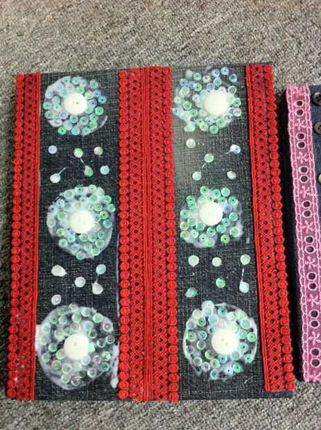 1-después de su Dríada cortar la tela extra y quemar los bordes ligeramente y con cuidado para garantizar que el borde do a todos los rincones. 2-después el pegamento seco en parte pegar la decoración deseada como te gusta, el rojo se fue para mi hijas y amiga la rosa mis hijas uno i decoradas con encaje rojo y transparente falk (lo sentimos no lo que llama) y antiguos botones del color de rosa uno también con encaje y botones dejaron seco y su don.