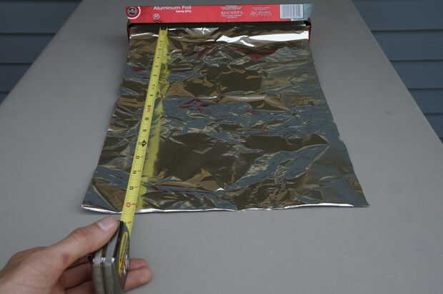 Primero necesitará usted rasgar una hoja de papel de aluminio. Para una linterna utiliza pilas D que conseguí una pieza cerca de dieciséis pulgadas de largo. La cantidad de papel utilizado no tiene que ser exacta; apenas consigue tan cerca como sea posible. Esta técnica de emergencia funcionará con otros tamaños de la batería, pero puede variar la cantidad de papel utilizado. Una vez que entienda cómo se hace, podrás fácilmente la figura que por su propia cuenta.