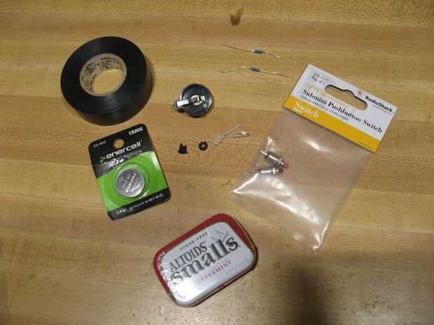 Lo único que no tenía en mi "tienda" eran los interruptores de botón. Tuve que morder la bala y comprarlos de Radio Shack. Son del tipo "submini", que significa muy pequeño.