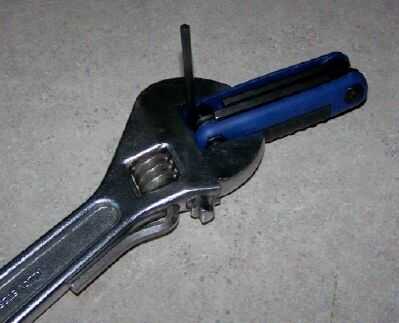 Una llave ajustable de 12 pulgadas es la herramienta clave hexagonal en sus mandíbulas y ofrece casi exactamente la longitud correcta de una barra para su llave dinamométrica brew casero. Los lados de la herramienta clave hexadecimal deben ser suaves. Moler los extremos de los pernos que sujetan las asas para hacer las superficies del lado liso, si es necesario. Hacer las mandíbulas tan ajustado como sea posible.