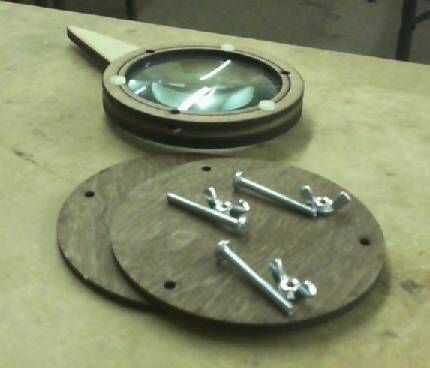 Tengo ganas de una buena lupa para caer en mi bolsa de herramientas para un buen rato. Nunca encontré nada que me convenía. Quería una buena lente, y quería ser protegido mientras en mi kit de herramientas. Encontré algunos lentes agradables en Tanner en Dallas para $1,99 y decidió que haría mi propia. Las lentes tienen un diámetro de 9 cm. Usted tendrá que hacer ajustes para otros lentes de tamaño. Yo estoy diseñando un soporte derivado de este diseño para montar una lupa a unos bancos de trabajo aquí en Dallas Makerspace.