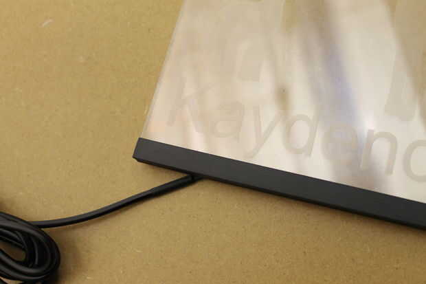 a continuación, corte mi acrílico claro.  Junté mis 2 piezas en mi tira de led para que pudiera tomar algunas dimensiones para que mi base encajaría bien con la Asamblea.