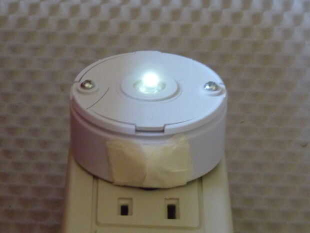 Cubra el sensor con varias capas de cinta adhesiva hasta que el LED enciende. La cantidad de cinta dependerá de la cinta y la cantidad de luz en la habitación. El brillo del láser en el sensor para apagar el blanco.