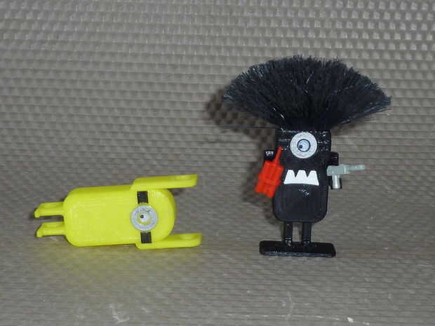 El súbdito negro (no tienen filamento morado) fue 3D impreso con un rectángulo vacío (como una caja de jardinera) para su cabeza. Para crear el cabello las cerdas del cepillo en la cabeza con resina de 5 minutos en condiciones de servidumbre y aventó el cabello después de curar. El epoxy es lo suficientemente grueso como para que no absorberá hasta las cerdas.