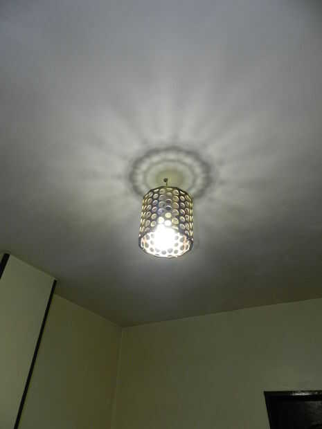 Este plan de dos luces individuales como siguiente paso que se puede ver en archivo dwg de la tripaPaso 1: Sola luz la luz led que dan una luz hacia abajo y con talco transparente amarillo en cuatro lados conseguimos una agradable iluminación amarill